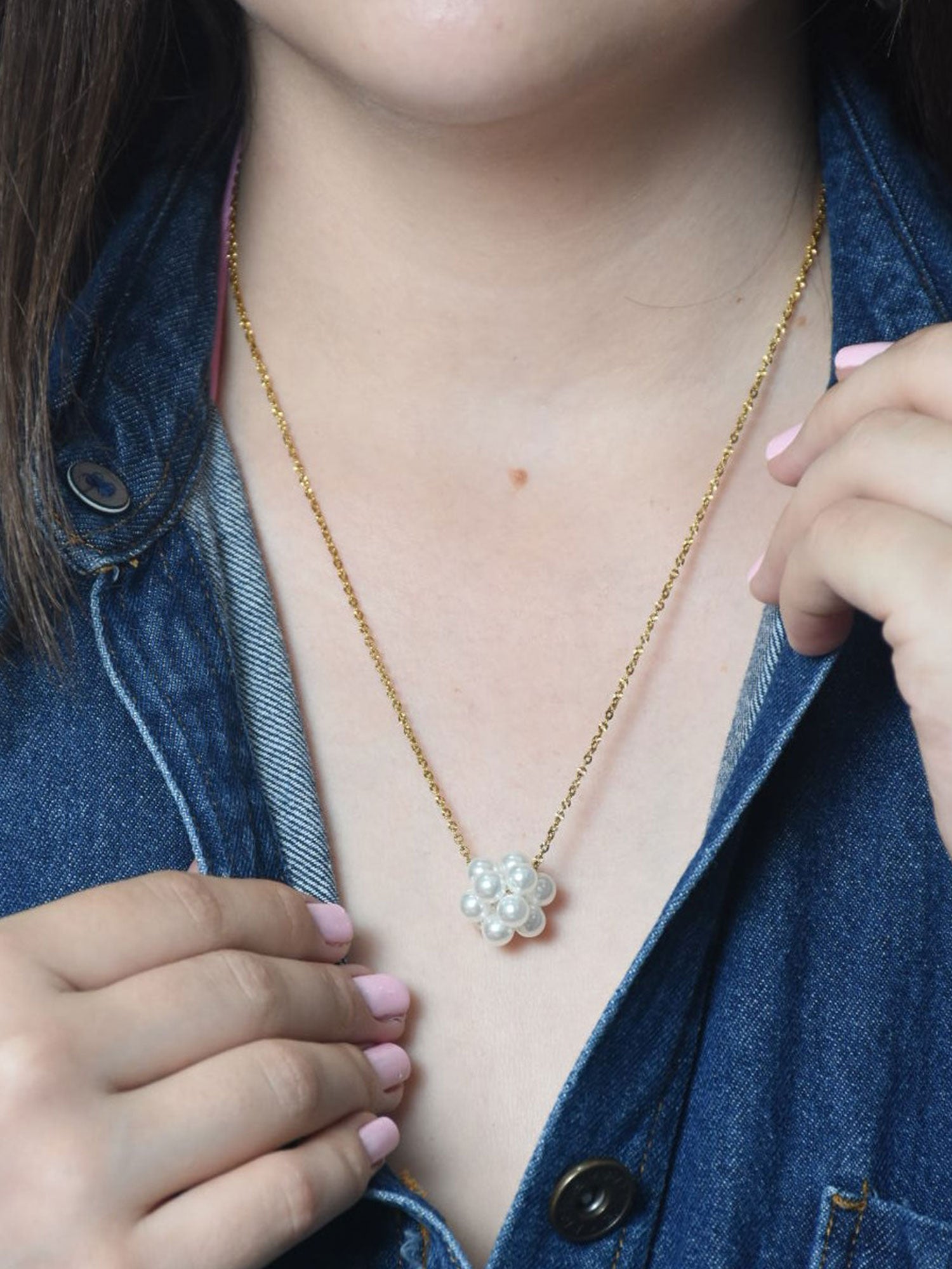 La Cadena Venecia es de esas piezas que no gritan… pero se hacen notar. Su dije de perlas en forma de flor flota sobre tu piel como un pequeño símbolo de luz, delicadeza y estilo personal. Es sutil, pero poderosa. Ideal para quienes saben que lo elegante no siempre tiene que ser complejo.