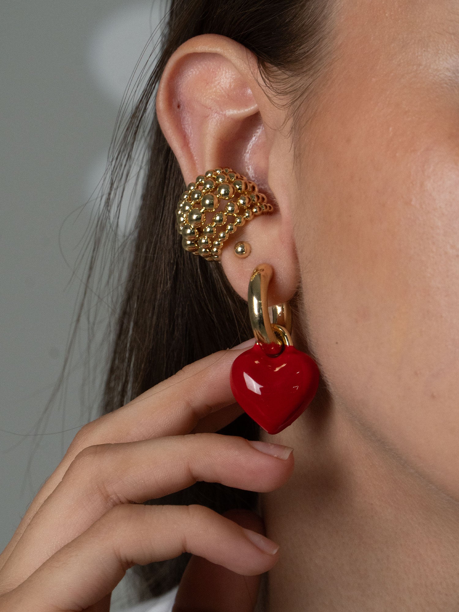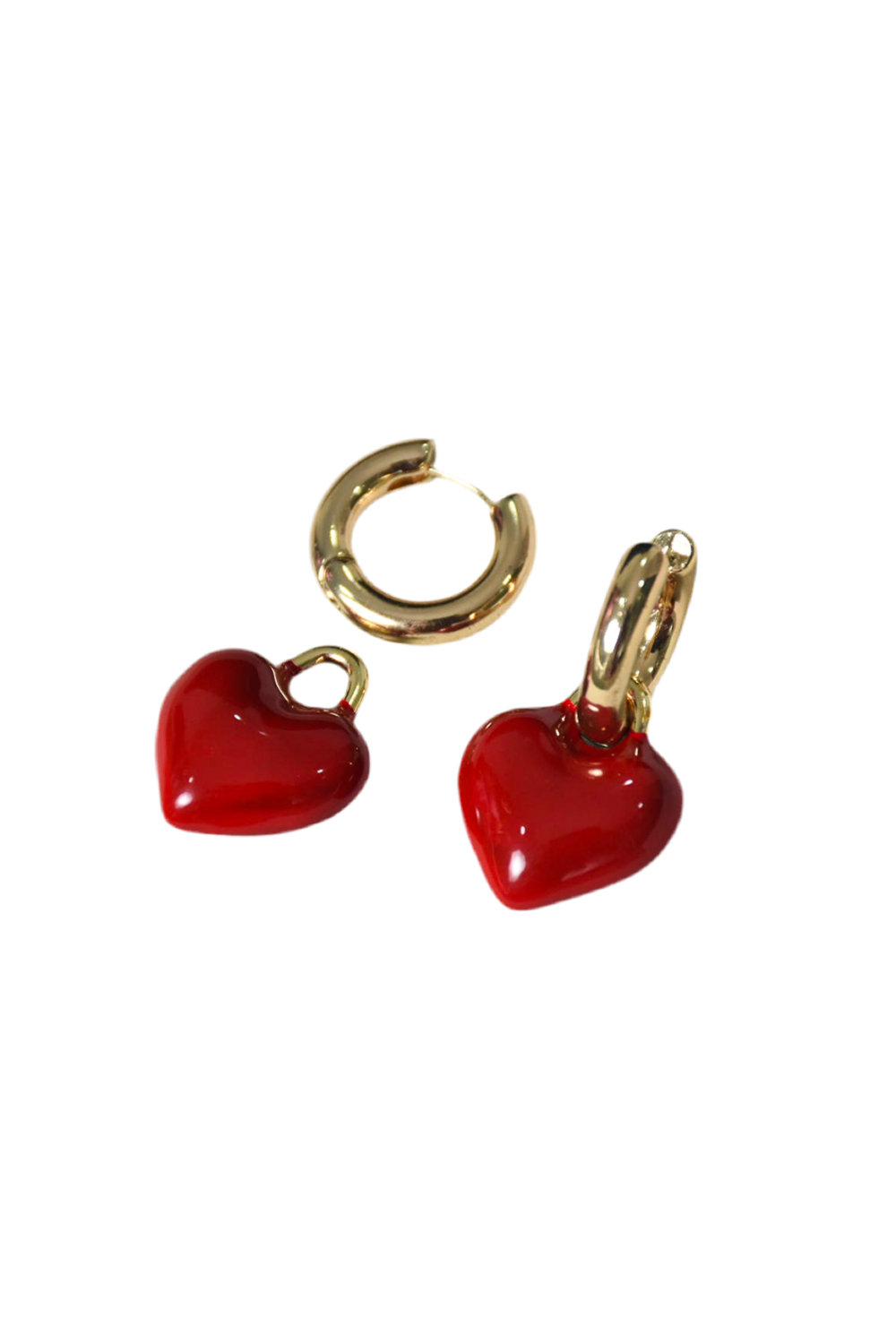 Aros dorados desmontables con dije de corazón rojo esmaltado.