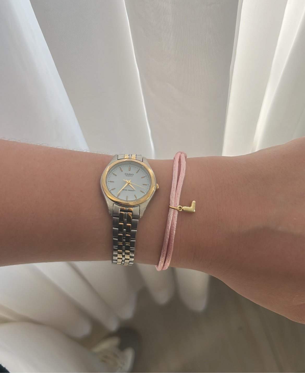 A veces basta con una letra para decirlo todo. La pulsera “Iniciales en Hilo” es simple, ligera y llena de intención. Su hilo satinado rosa y dije dorado en forma de inicial crean un detalle personalizado que habla de ti (o de esa persona especial) sin exagerar.